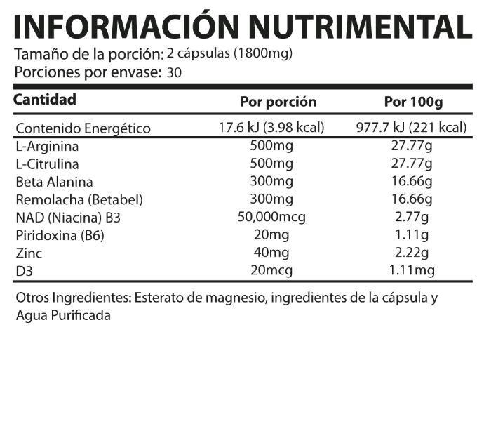 L-ARGININA, L-CITRULINA, BETA ALANINA, NAD, ZINC